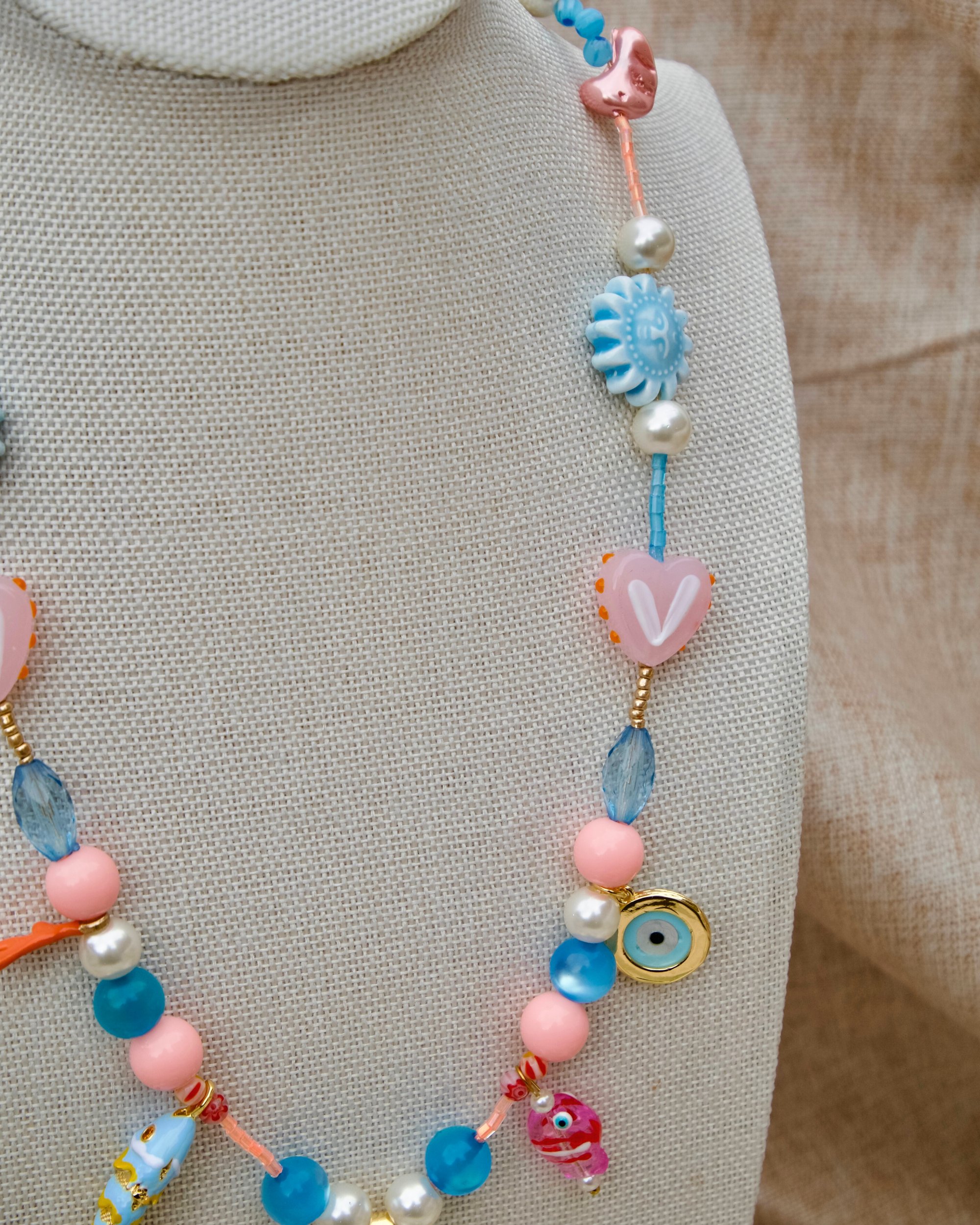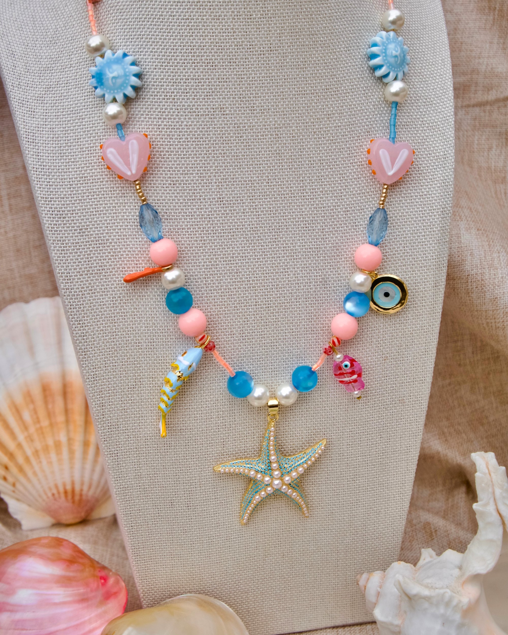 Dive into a world of whimsical charm with our Isla Necklace ~ a delightful confection of soft hues and enchanting oceanic elements. This necklace is a playful celebration of beachside dreams and magical marine life, perfect for adding a touch of unique sweetness to your look.