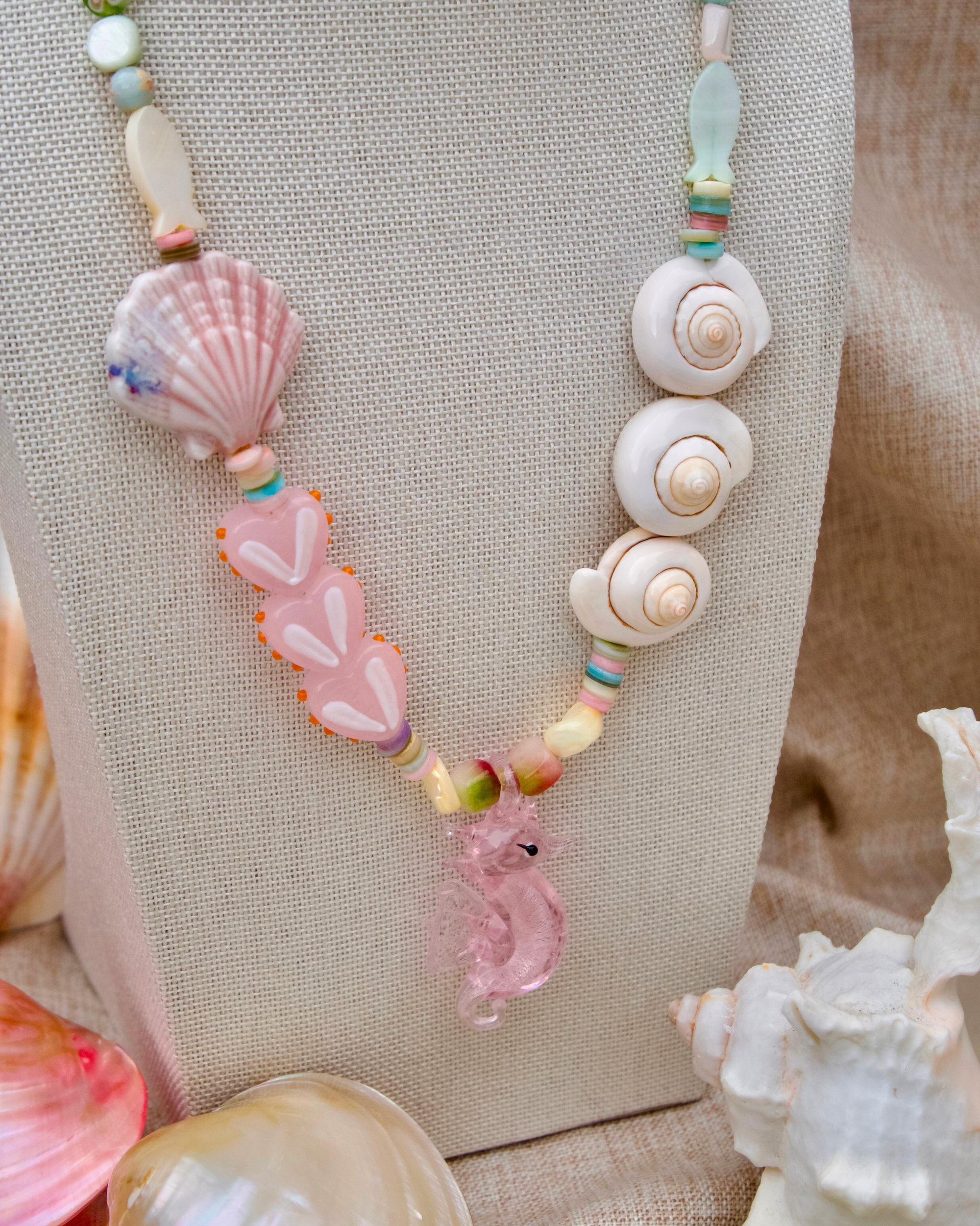Step into a playful seaside fantasy with our Mariana Necklace - a whimsical and unique piece that brings the vibrant charm of the ocean's treasures to life.