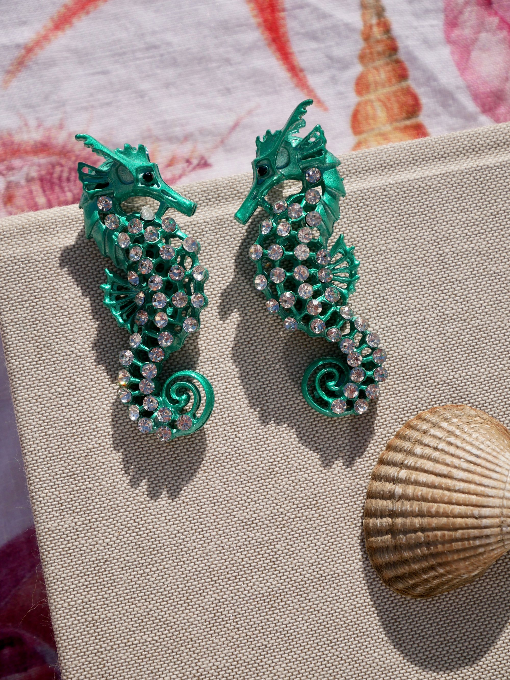 These beautiful, playful seahorse earrings feature dozens of glittering gems. Get ready to have all eyes on you!